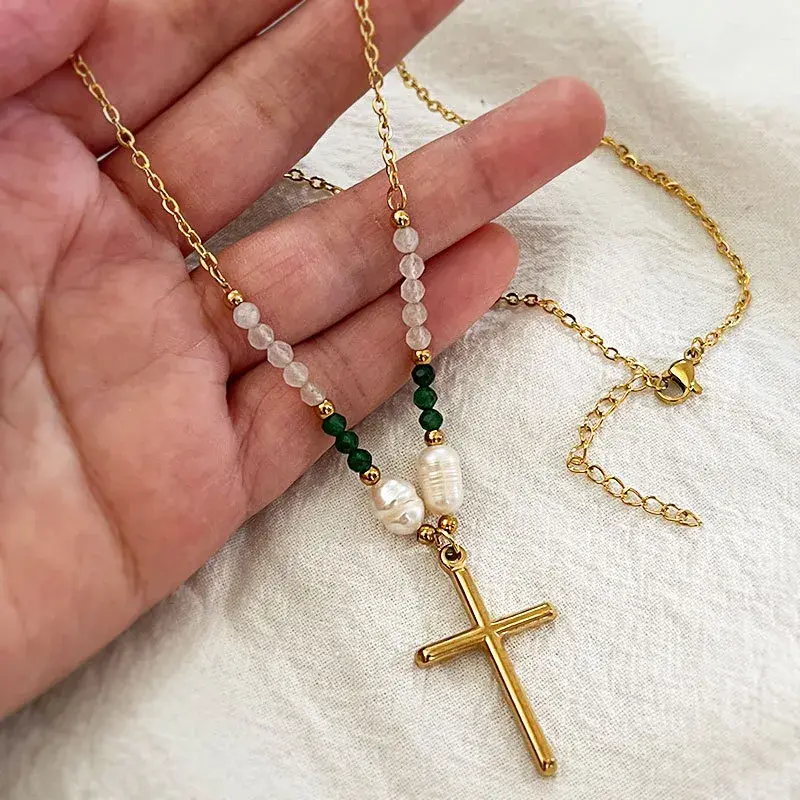 Collar Cruz Dorado y plateado